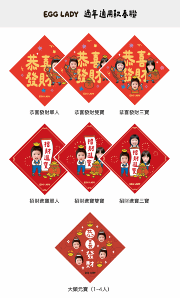 | 款式(一組2入) | 恭喜發財, 招財進寶, 大頭元寶 |